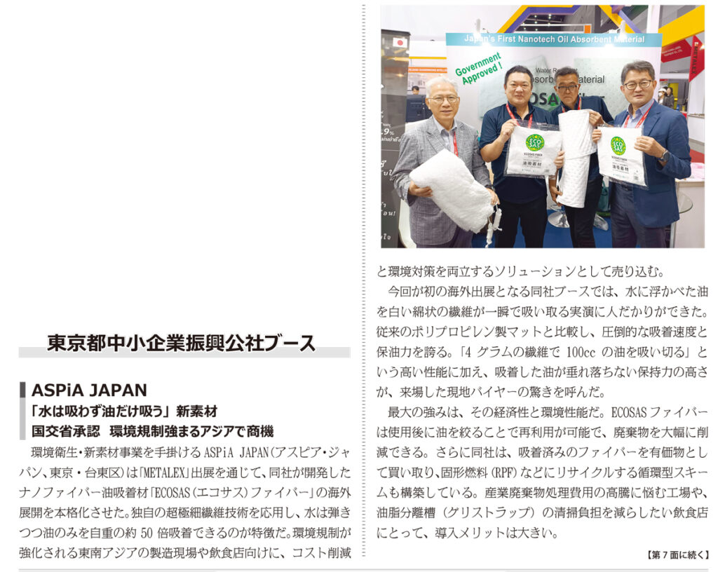 プレスリリース:環境貢献賞受賞・国交省型式承認「ECOSAS」ASPiA JAPAN、東京都選抜企業としてMETALEX Thailand 2025へ海外初出展