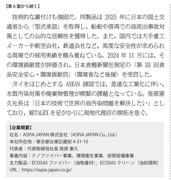 「バンコク週報」2025年12月27日号にASPiA JAPANがMETALEXに出展したブースについての記事が掲載されました。